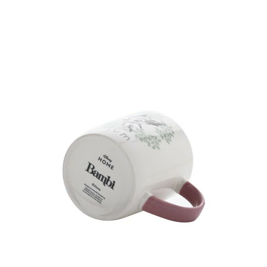 A ‘Mum’ Bambi boxed mug by DISNEY®.This sweet and tenderly designed mug lets mothers who love Disney know how special they are.The new bone China mug features a white finish and is adorned with an adorable, printed image of Bambi surrounded by green leaves, which is repeated on both sides. It is finished by ‘Mum’ in silver lettering and large, pink handle.The mug is packaged in a full colour lidded box.