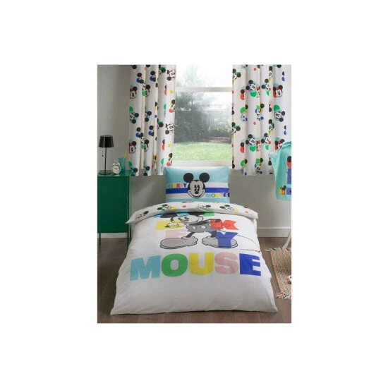 100% Cotton. Contents: Duvet Cover, Pillowcase. Design: Circle, Repeat Print, Square, Text, Triangle. Reversible. 100% Officially Licensed. Characters: Mickey Mouse.