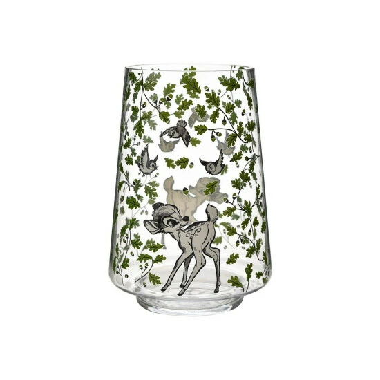 A Bambi Forest Friends vase by DISNEY®.This stunning vase will enhance flower displays even further for Disney fans.The large, glass vase showcases a beautiful pencil sketch image of Bambi, complete with additional forest design in full colour. It offers a wide opening in which to display beautiful flower arrangements.The vase is packaged in a closed colour box.