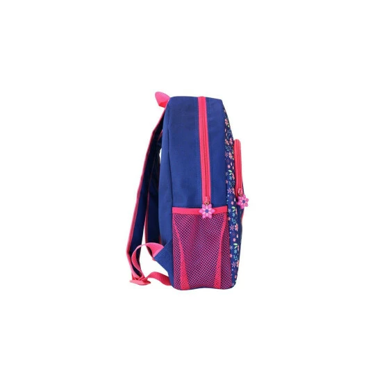 Approximate Dimensions: 28 x 36 x 10 cm. Childrens Frozen rucksack in lovely navy with floral pattern detail. This magical Disney Princess bag is perfect for adventures in Arendelle! Features a bold print of princess Elsa and Anna. Includes a zipped main compartment and front pocket, with mesh side pockets, a handy carry loop and adjustable shoulder straps.