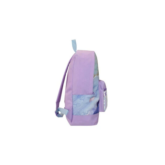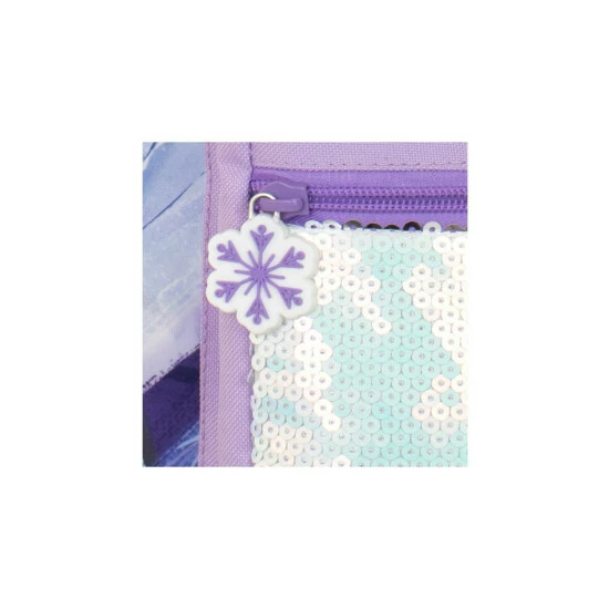 Approximate Dimensions: H:40 x W:29 x D:9.5 cm. Official licensed Disney merchandise. Take a trip to Arendelle with this magical Frozen backpack for Kids. This childrens rucksack in lilac features a lovely print of Princess Elsa and Anna with everyone’s favourite snowman Olaf. The backpack comes complete with a snowflake rubber zip pull, front pocket which has silver sequins, to hold your esseentials. A must have bag for your own Princesses’ adventures! Comes with adjustable shoulder straps and a hanging loop.