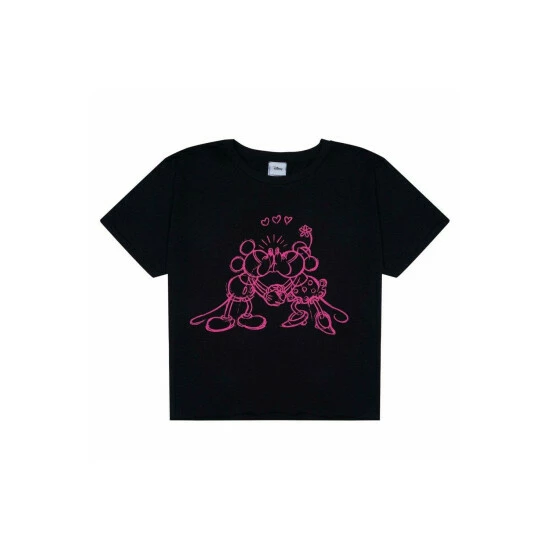 100% Cotton. Characters: Mickey Mouse, Minnie Mouse. Design: Printed. Neckline: Crew Neck, Lycra Ribbed. Fit: Regular. Sleeve-Type: Short-Sleeved. Cropped, Shoulder Taping, Single Needle Stitching. 100% Officially Licensed. Soft.