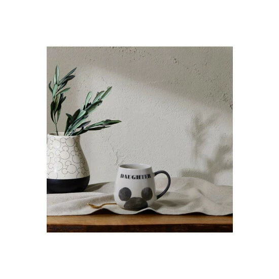 A Mickey ‘Daughter’ mug by DISNEY®.This personalised mug is made especially for daughters of all ages who love the magical world of Disney.The large ceramic mug features a black handle and prominent image of Mickey Mouse’s head in the same colour, above which sits its ‘Daughter’ decal in complementary font. The image and decal are duplicated on the reverse side.The mug is packaged in a lidded gift box.