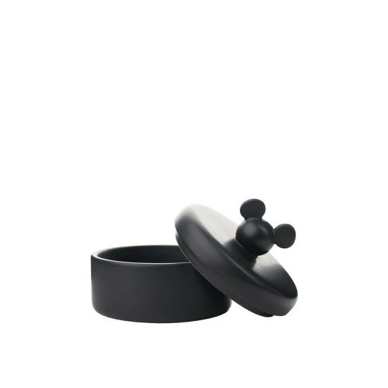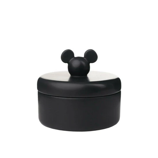 A Mickey head storage jar by DISNEY®.This bold storage jar offers a sleek and stylish option for the home décor of Disney fans.The jar features a stunning black finish throughout which is finished with an instantly recognisable Mickey head handle. The tightly closed lid opens to ample storage for trinkets, jewellery and other small valuables.The jar is packaged in a colour box.