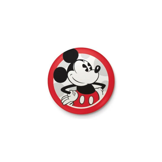 Material: Metal. Height: 2.5cm. Width: 2.5cm. Fastening: Pin. Design: Circular, Printed. Characters: Mickey Mouse. 100% Officially Licensed.