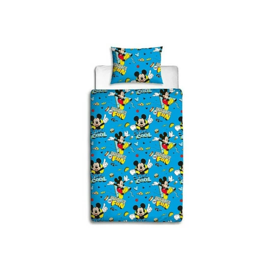 100% Microfibre. Contents: Duvet Cover, Pillowcase. Design: Headphones, Hot Dog, Repeat Print, Text. Reversible. 100% Officially Licensed. Characters: Mickey Mouse.