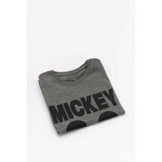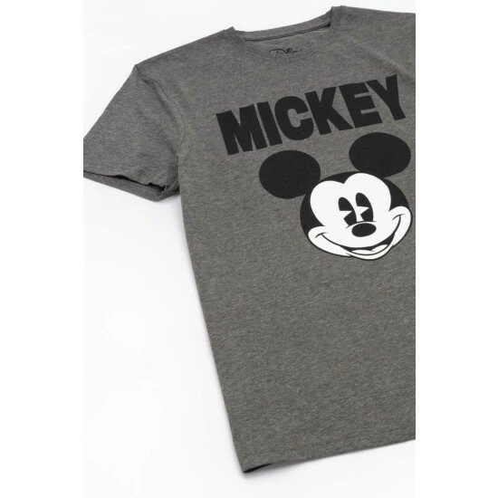 60% Cotton, 40% Polyester. Design: Face, Text. Characters: Mickey Mouse. Neckline: Crew Neck. Sleeve-Type: Short-Sleeved. 100% Officially Licensed.