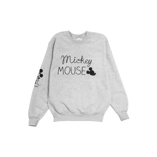 Material: 80% Ringspun Cotton, 20% Polyester. Characters: Mickey Mouse. Design: Printed, Text. Fit: Boyfriend. Single Needle Stitching, Woven Back Neck Label. Neckline: Crew Neck, Lycra Ribbed. Sleeve-Type: Long-Sleeved. Style: Loose. Fastening: Pull Over. 100% Officially Licensed.