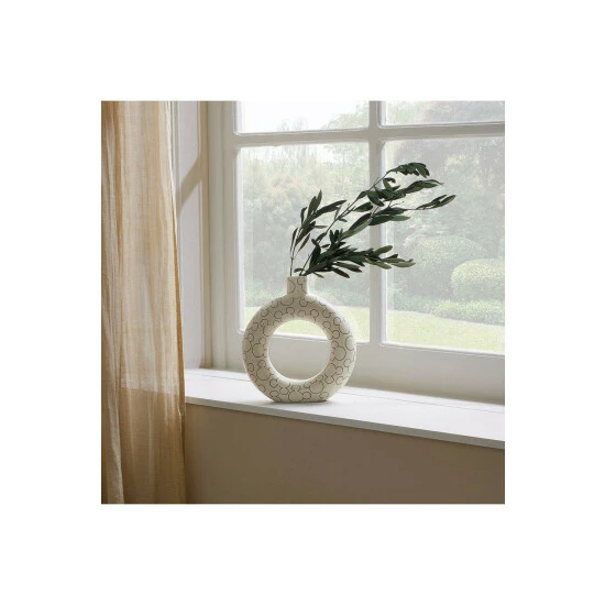 A Mickey pattern circle vase by DISNEY®.This eye-catching ornament is an attractive gift for Disney fans which offers numerous options for display around the home.Each ring-shaped dolomite vase features a patterned, Mickey Mouse head design upon its white colouring. It has a narrow neck in which to display a decorative arrangement of choice.The vase is packaged in a 4c printed box.