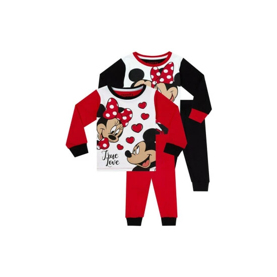 Girls Minnie Mouse Pyjamas 2 Pack. Infuse their dreams with Disney magic with this adorable twin pack of Minnie Mouse jammies! In white, red and black, each pair showcases Minnie and Mickey in two equally cute designs. Your Disney fan will have the sweetest dreams with Minnie and Mickey Mouse in these adorable jammies!