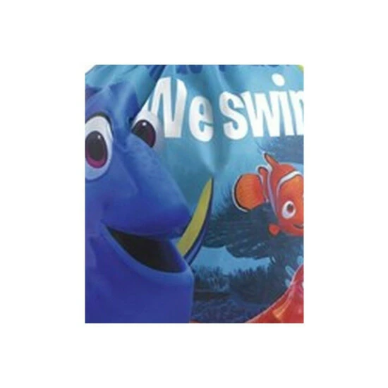 Kids Disney Pixar Finding Dory drawstring bag. Great to use as a gym bag for school. Features Dory, Nemo and Hank. Message printed on bag: What do we do? We swim! Yellow contractible carrying straps. One size: 33cm x 40cm (13in x 16in). Fabric: 100% Polyester. Wash with a cloth. Estimated Capacity: 6.6L.