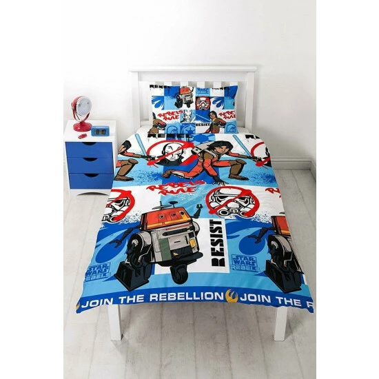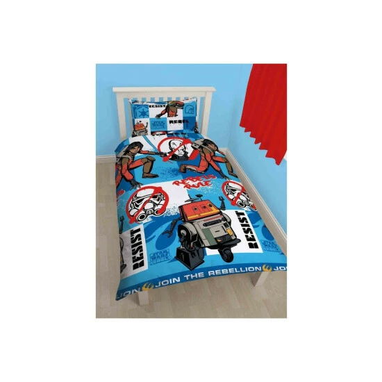 Bed set with reversible Disney Star Wars design. Duvet cover: Single- 135cm x 200cm (54in x 79in), Double- 200cm x 200cm (79in x 79in), Pillowcase: 48cm x 74cm (19in x 29in)(all approx). 100% Polyester Microfibre. Machine washable.